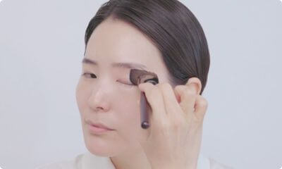 ブラシを持ち替え、目頭~まぶたをスーッと塗る。